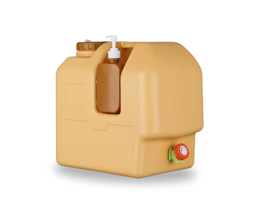 מיכל זה תוכנן במיוחד לשימוש אינטנסיבי בשטח, ומציע עמידות גבוהה בזכות דפנות עבות ופלסטיק קשיח המאושר למגע עם מזון, ללא BPA וללא טעמי לוואי. הוא כולל ברז מזיגה נוח המאפשר שליטה קלה ומדויקת על זרימת המים למניעת בזבוז, וכן סבונייה מובנית ונשלפת המאפשרת שטיפת ידיים בכל מקום. לניקוי ומילוי מהירים, המיכל מצויד בפתח רחב במיוחד, המתאים גם להכנסת קוביות קרח בקלות.