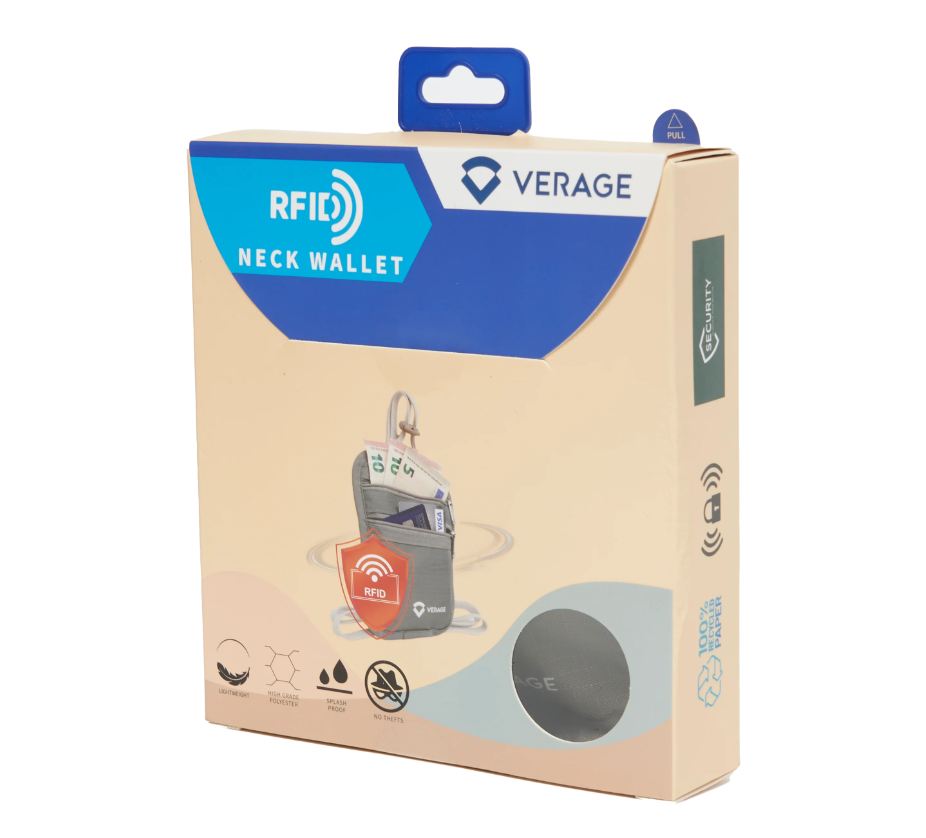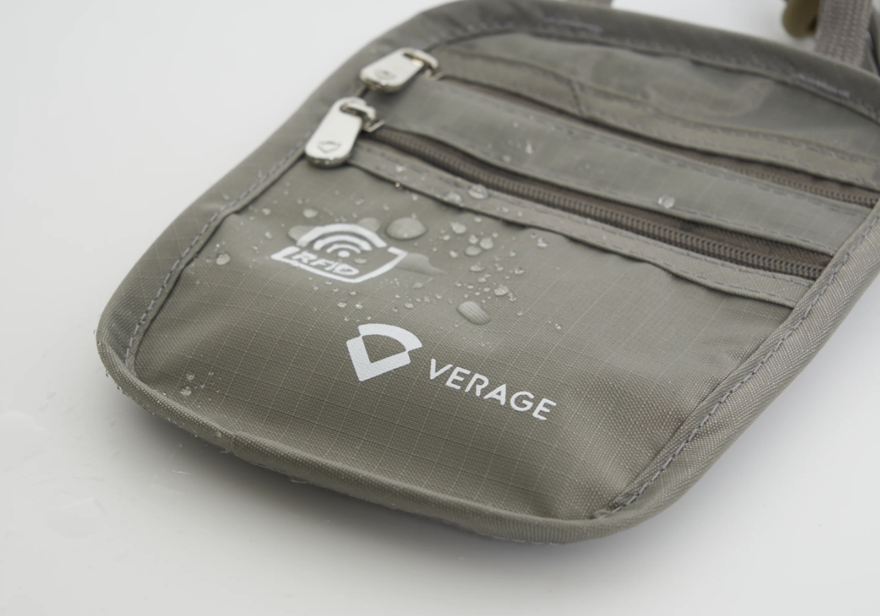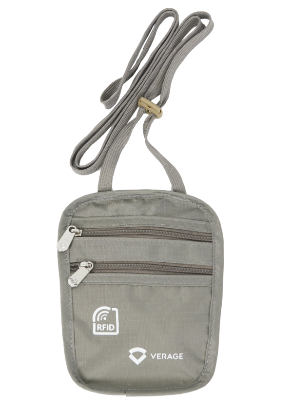 חגורת כסף מבית המותג VERAGE הניתנת ללבישה מתחת לחולצה, בעלת שני תאים הנסגרים ע"י רוכסנים משמשת לנסיעות לחו"ל