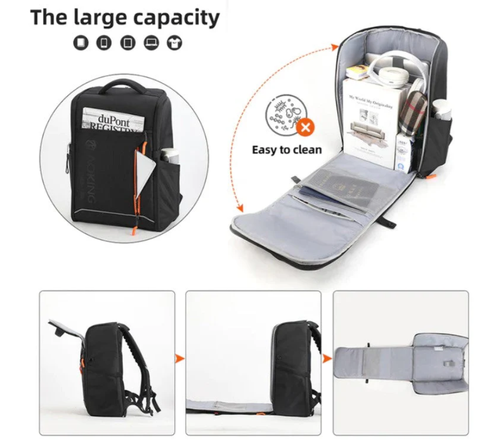 תיק גב צעיר ולגנטי בקווים נקיים למחשב נייד בגודל 15.6" מבית המותג אוקינג הכולל יציאת USB מובנה לטעינת ניידים, התיק מציע ארגון פנים ארגונומי למסמכים וגאדג'טים דיגיטליים. תיק פונקציונאלי המתאים לחיי היום יום לתיכון ולאוניברסיטה תיק מודרני בעיצוב שייקי אלגנטי עם תא מרכזי גדול כולל ריפוד ללפטופ \אייפד
